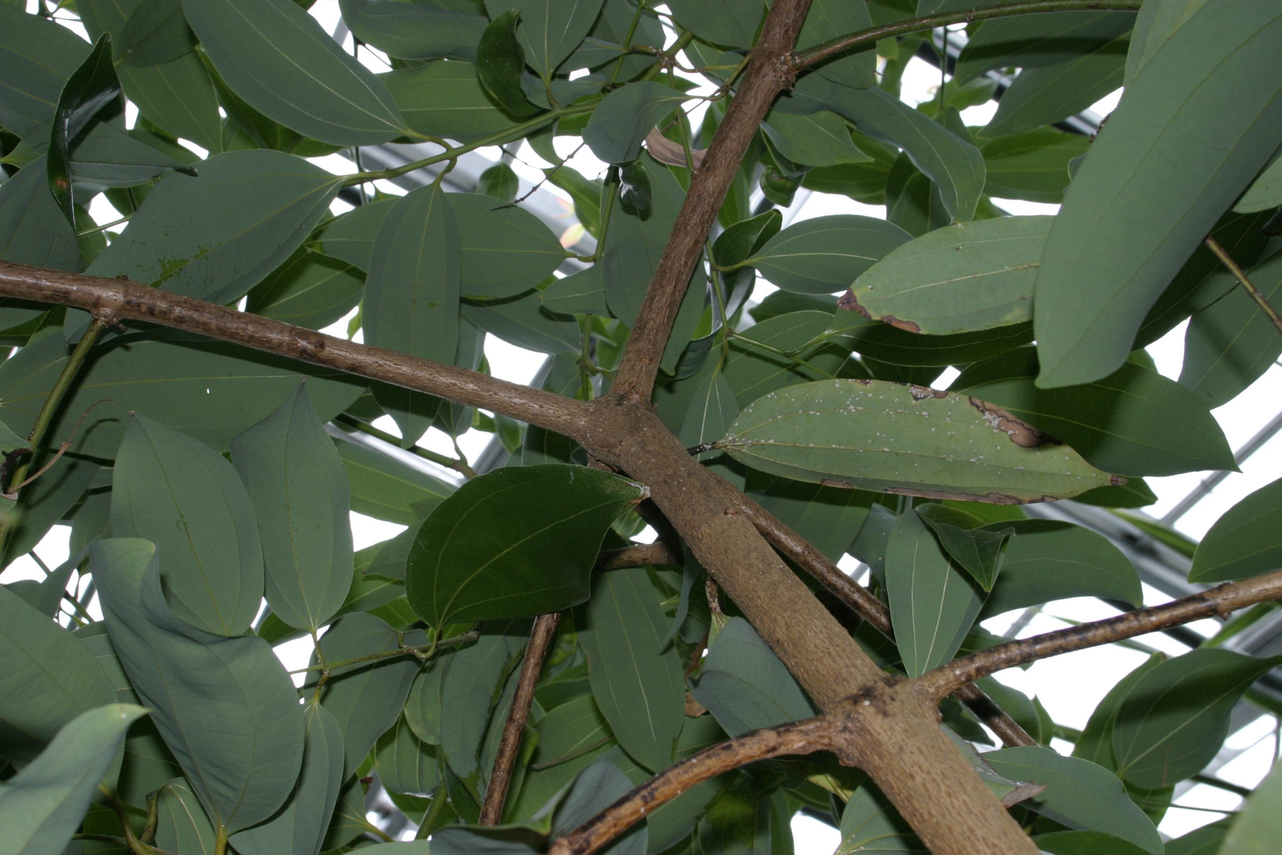 Der Zimtbaum (Cinnamomum sp.) gehört zur Familie der Lorbeergewächse (Lauraceae) und ist ein immergrüner, etwa 10 bis 12 Meter hoher Baum mit rötlicher Rinde. Immergrün bedeutet, dass er nie alle seine Blätter zur selben Zeit abwirft. Die Blätter sind oval, glänzend, im Austrieb rötlich und nach Zimtöl duftend. Sehr unscheinbar und klein sind die blassgelben Blüten, die von Insekten bestäubt werden. Im Gegensatz dazu werden die birnenförmigen, dunkelgrün bis braunrot gefärbten Früchte sehr groß.
